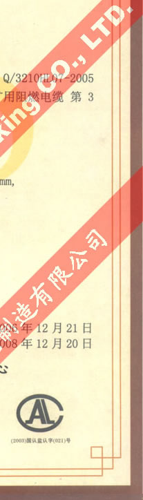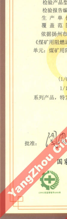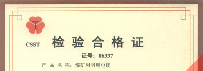 國家采煤機械質量監(jiān)督檢驗中心檢驗合格證--煤礦用阻燃電纜(MHYV,MHYVP)