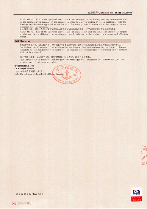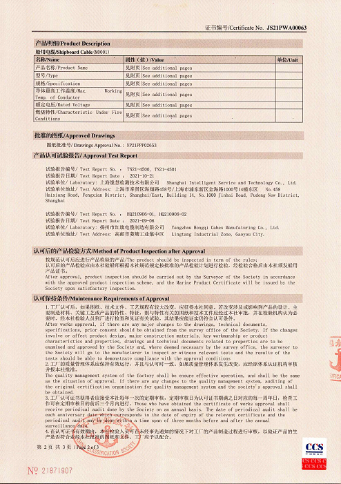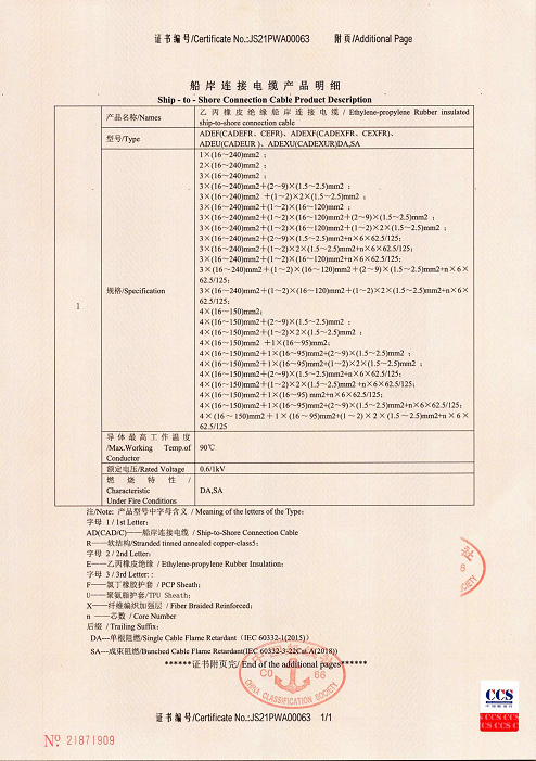 船岸連接電纜工廠認可證書