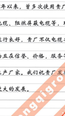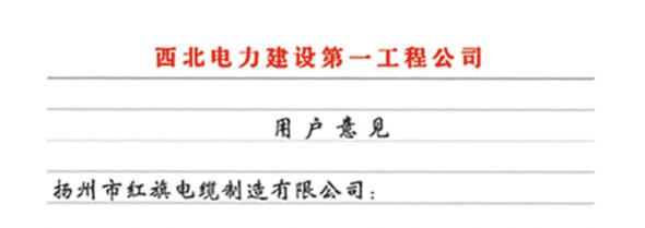 西北電力建設(shè)第一工程公司在多年使用我公司多種電纜產(chǎn)品后對(duì)我公司產(chǎn)品質(zhì)量和服務(wù)的評(píng)價(jià)