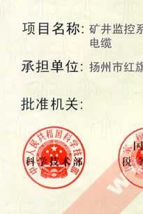 國(guó)家重點(diǎn)新產(chǎn)品證書(礦井監(jiān)控系統(tǒng)用本安型無鹵低煙屏蔽信號(hào)電纜)