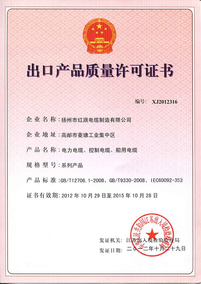 出口產(chǎn)品質(zhì)量許可證書(shū)