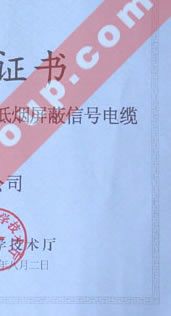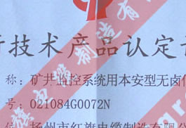 高新技術(shù)產(chǎn)品認(rèn)定證書(礦井監(jiān)控系統(tǒng)用本安型無(wú)鹵低煙屏蔽信號(hào)電纜)